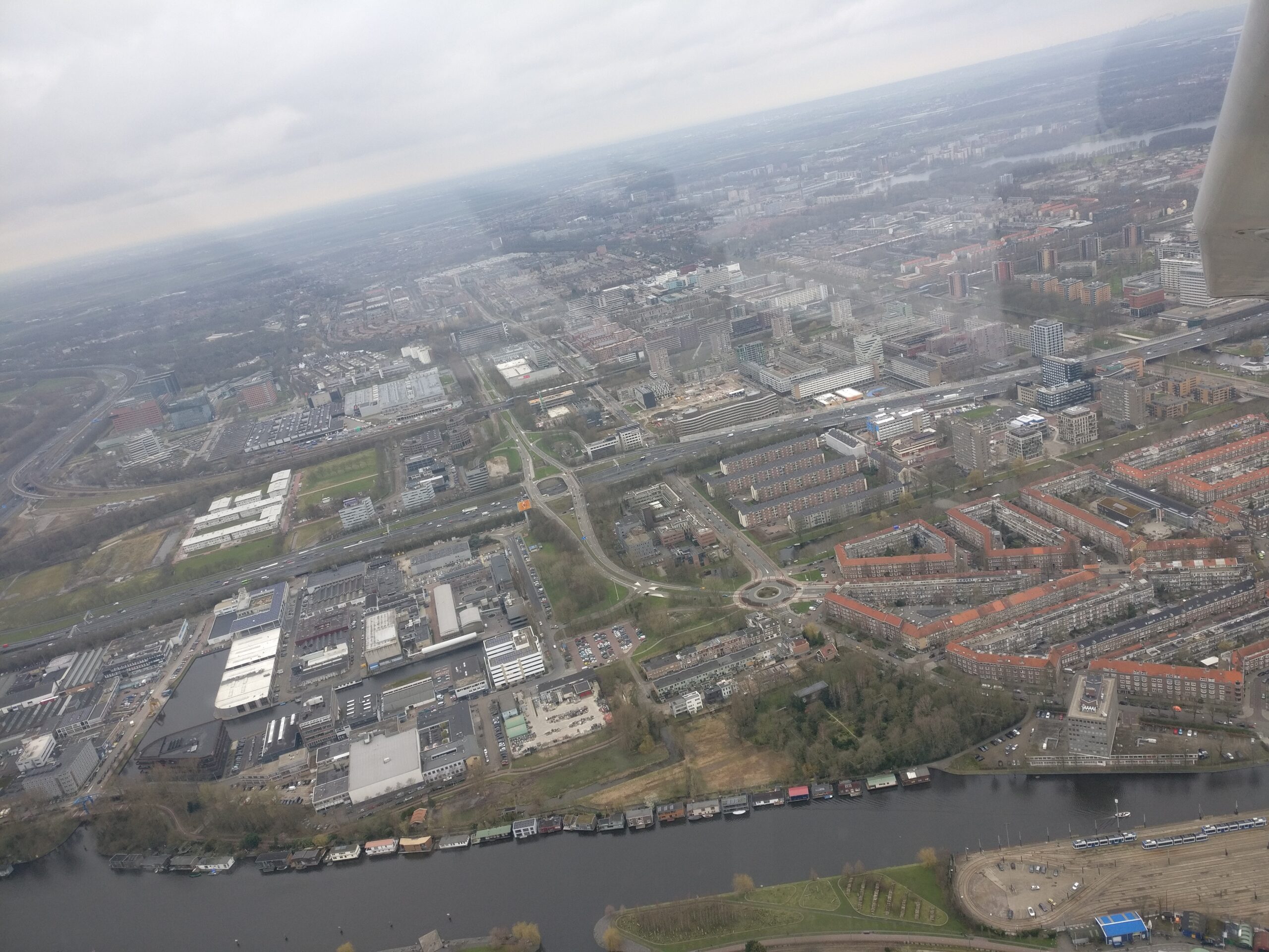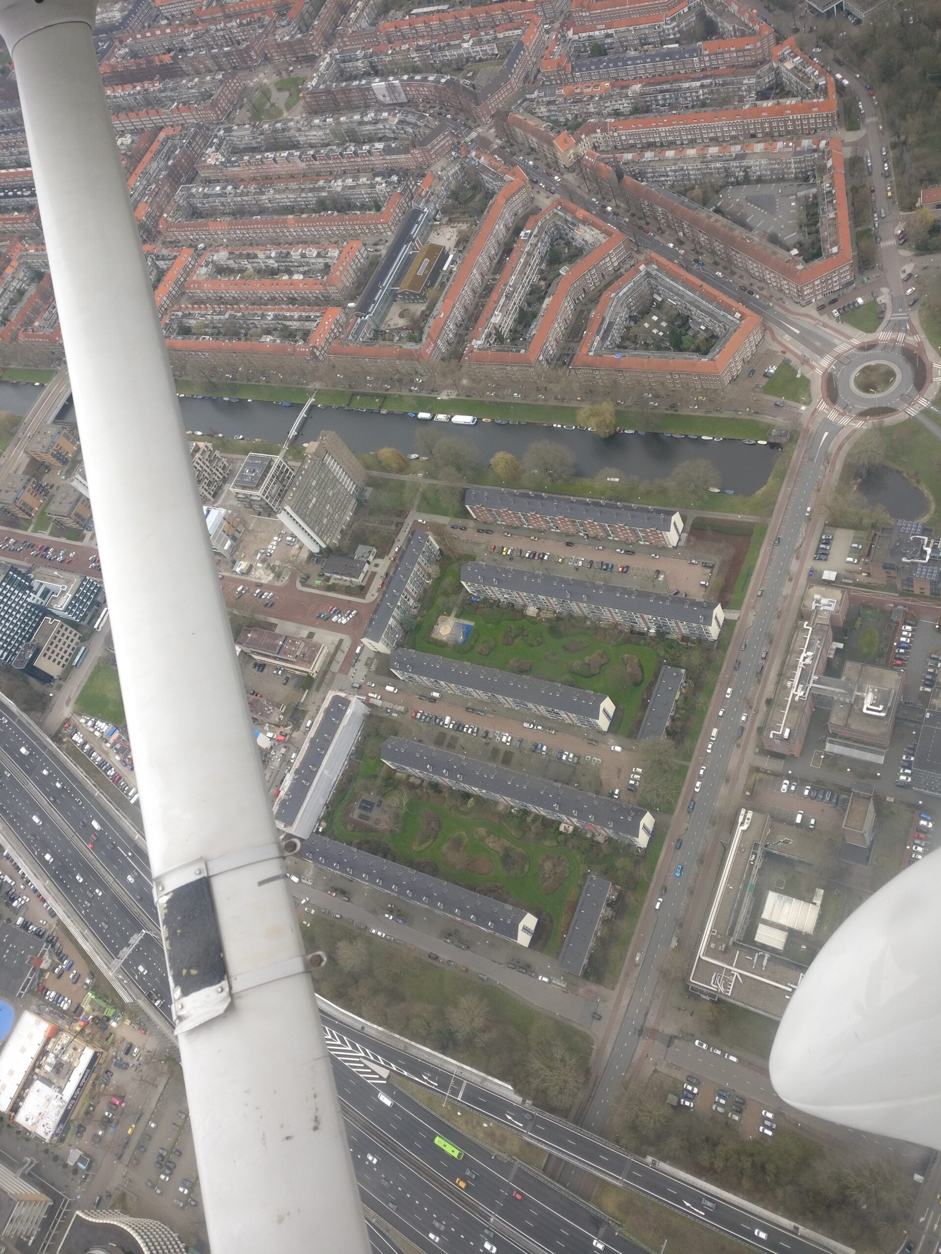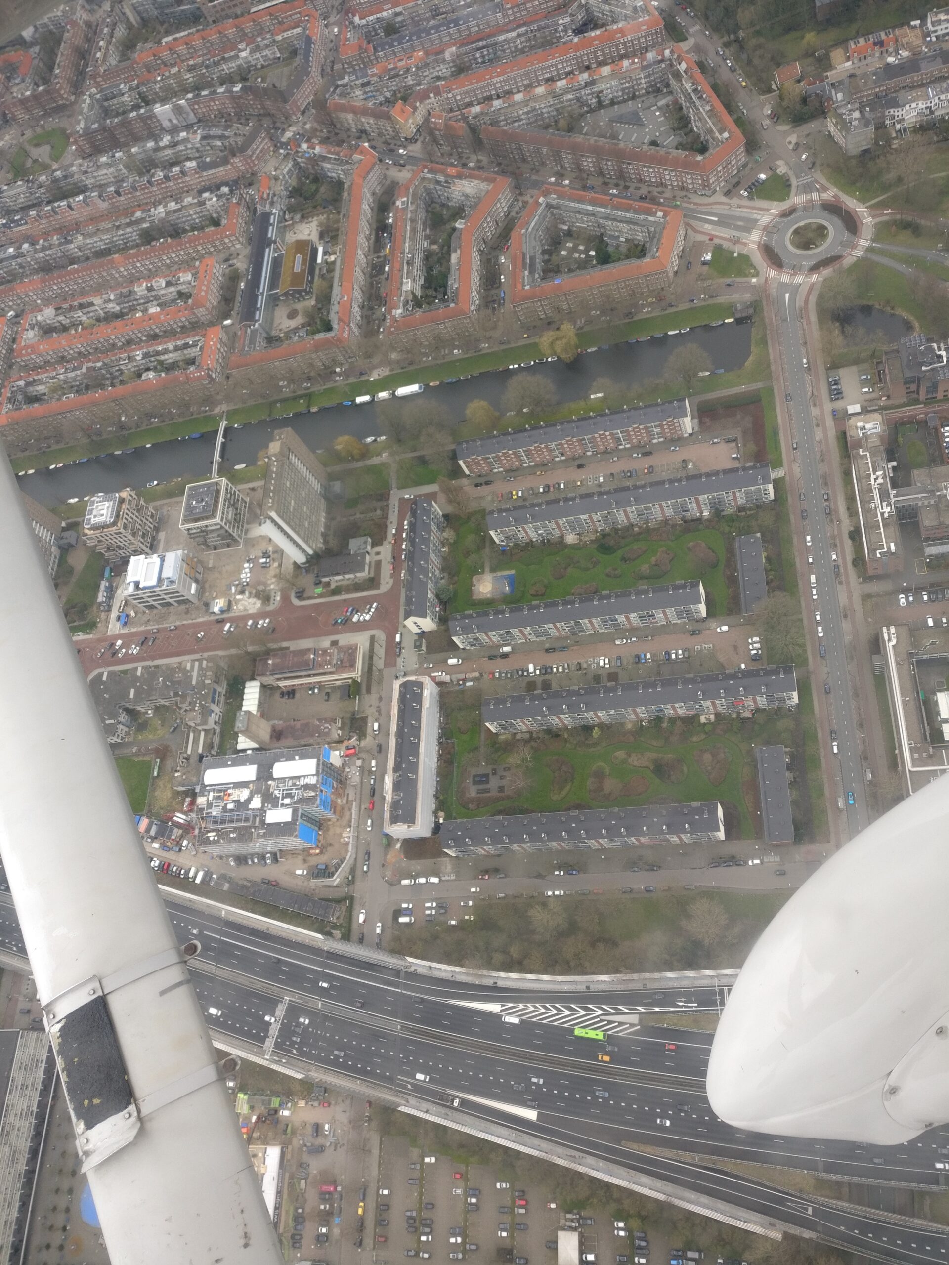 Een paar jaar terug vlogen wij voor de lol een rondje Amsterdam en daar had ik nog wat fotos van. Zou het niet mooi zijn als ik met ChatGPT deze kan stitchen tot een panorama van Amsterdam Zuid, Hoofddorplein en het Schinkelgebied bij het Olympisch Stadion?