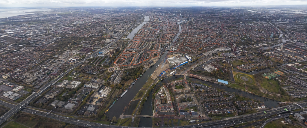 Luchtfoto’s van de Hoofddorppleinbuurt en Schinkelbuurt verbeterd met OpenAI Images 2.0