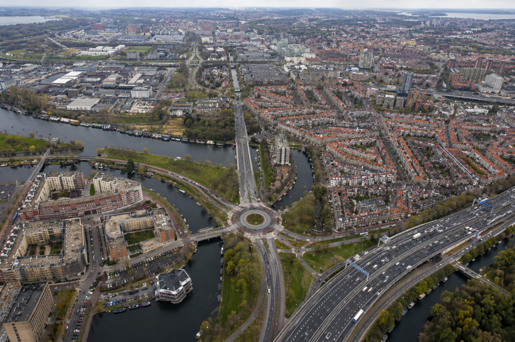 De A10 West heeft nu een rotonde gekregen en alle lelijke nieuwbouw staat op een eigen eilandje. Wel creatief.